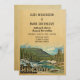 A unique vintage Minnesota wedding invitation in mid-century style featuring a beautiful nature scene with forest trees, snow and a stream river or brook flowing by a small mountain. Celebrate your Minnesota destination wedding with this charming Minnesota wedding invite. Perfect for camping weddings and outdoor ceremonies.