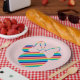This graphic features Minnie's iconic head in a colourful rainbow pattern.