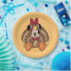 This adorable illustration features Minnie Mouse dressed in a Thanksgiving turkey costume. The outfit includes a whimsical turkey headpiece with a red bow, a full feathered tail, and a charming expression on Minnie's face. The warm autumn colours and playful design make this image perfect for holiday-themed decorations and children's party materials, bringing a touch of Disney magic to Thanksgiving festivities.