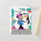This cute summer graphic features Minnie Mouse holding a toucan among tropical flowers and stripes.
