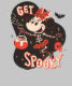 Cette illustration audacieuse et ludique présente Minnie Mouse dans un thème d'Halloween spirituel. Vêtue comme un squelette avec un casquette de sorcière festif, Minnie remue joyeusement un chaudron bouillonnant sous une nuit étoilée. Les mots "Get Éffrayant" donnent le ton, tandis que les chauves-souris et un crâne flottant ajoutent à l'atmosphère étrange mais charmante. Le design utilise un contraste saisissant de noir et de rouge sur un arrière - plan orange, capturant l'essence d'une Halloween ludique et éffrayante.