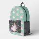 Mint and charcoal rainbow unicorn name printed backpack