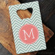 Mint and Coral Chevrons with Custom Monogram Wallet Bottle Opener