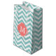 Mint and Coral Zigzag Pattern Monogram Small Gift Bag