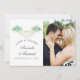 Mint green roses with gold tropical foliage and string lights wedding thank you photo cards customizable to your event specifics.