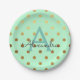 Mint and Gold Foil Polka Dots Monogram Birthday Paper Plate