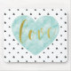 Trendy script typography design featuring the word "love" on printed gold over a mint watercolor heart and a black and white triangles hand painted pattern.