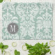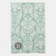 Mint and Grey Damask Pattern Custom Monogram Kitchen Towel