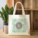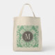 Mint and Grey Damask Pattern Custom Monogram Tote Bag