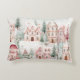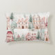 Mint and Pink Cozy Watercolor Winter Scene Accent Pillow