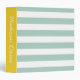 Cute, chic mint and white bold stripes binder with a yellow personalized spine. Perfect for school, work, and home! Change the font style and colour by clicking on the "Customize It" button below the product image.