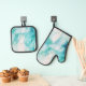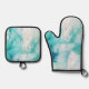Mint Aqua Ink Marble Oven Mitt & Pot Holder Set