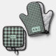 Protect your hands in style with this oven mitt and pot holder set, featuring a chic, easy-to-read font and a refreshing mint and black buffalo plaid pattern. Ideal for adding a modern touch to your kitchen decor, this set combines practicality with contemporary design, ensuring both safety and style in your culinary adventures.