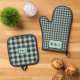 Mint & Black Buffalo Plaid Monogram Initials | Oven Mitt & Pot Holder Set