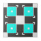 Modern vibrant ceramic tile design featuring a seamless chequered pattern made of geometric shapes in teal, black and white.