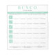 Tear off as many score cards as needed from this notepad and streamline your Bunco game with these ready to go and easy to use tear off scoring sheets and each player can easily keep track of their wins and losses as well as tallying buncos and little buncos for up to five rounds. Soft mint blue green accents add to the vibe and help match your even theme.