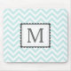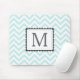 Mint Blue And White Chevron Custom Monogram Mouse Pad