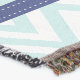 Modern stripes and chevron pattern design in navy blue and mint.