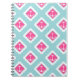 Mint Blue, Pink, White Anchors Nautical Pattern Notebook