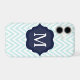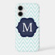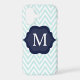 Mint Blue & White Chevron Navy Monogram Design