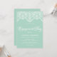 Elegant engagement party invitation featuring floral lace with a mint background.