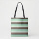 Tote Bag over the shoulder style fashion statement accessory printed with Mint Chocolate Chip Colour Block Stripes design mirrored image patterned original artwork illustration by TheFabricSeal print on demand shop at Zazzle.com #ZazzleMade https://www.zazzle.com/store/thefabricseal TheFabricSeal©️Original.
