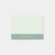 Modern, minimal custom name post-it notes featuring a beautiful colour block in mint green. Customize with your name, title, witty message, or leave blank.
