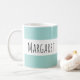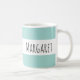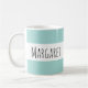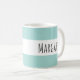 This personalized mug is designed to deliver a touch of individuality to your daily routine. The central feature of the design is a wide, customizable band that wraps around the mug, ready to be adorned with a name, rendered in a crisp, contemporary sans-serif font. The font's size makes a bold statement, ensuring the text is readable from across any room, making it a standout piece in any setting. The customization feature on this mug makes it a perfect, thoughtful gift for friends, family, or colleagues for any occasion, be it birthdays, holidays, or professional milestones. It also serves as a charming addition to anyone's kitchenware, office desk, or as a keepsake for special events.In the spirit of personal expression, the mug is designed to be offered in a variety of colours. Regardless of the chosen hue, the design will maintain its distinct clarity and impact. The colours are selected to complement the clean lines of the text, ensuring that each personalization stands out with elegance and simplicity. This mug is not just a drinkware item; it's a personal statement and a daily reminder of individuality and thoughtfulness. It is a blend of utility and personal expression, making it an essential item for anyone who values both practicality and a personalized touch in their daily lives.