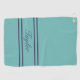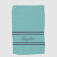 This design has a solid background colour of mint with dark blue stripes. The name is in a script font and can be customized using the template field.