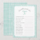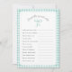 Editable game title and text questions for baby shower or bridal shower. Features a hand painted bow with gingham plaid Mint Green frame and backer.