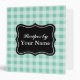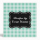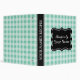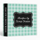 Mint green Gingham check recipe binder | personalized cook book. Custom cookbook with personalizable name, rustic table cloth pattern print and elegant label. Cute cooking gift idea for men and women; ie mom, wife, sister, aunt, grandma etc. Customizable background colour behind the chequered plaid design. Add your own family name or surname.