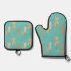 Mint Gold Glam Pineapples Oven Mitt & Pot Holder Set