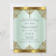 Mint Green Blue, Gold Baptism Invitation. Elegant pearl damask frame & gold cross. Customize with your own details. Please note all flat images! they do not have real jewels!