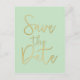 Mint & Gold SAVE THE DATE Modern Script Postcard