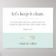 Remind customers, employees, and guests to wash their hands and avoid contact with surfaces with this chic and eyecatching office bathroom sign. Perfect for a bakery, caterer, kitchen supply retail store, chef or catering offices. Design features modern grey lettering on a white and mint green accented with a whisk illustration in faux gold foil.