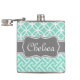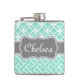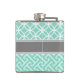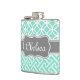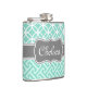 Mint Greek Key and Circle Patterns Grey Name Hip Flask