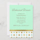 Modern mint green wedding rehearsal dinner invitation, with a mint green and gold on white polka dot pattern, across the bottom. Personalize the golden brown text for your wedding event. Coordinating wedding products are available.