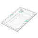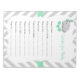 Mint Green and Grey Elephant Baby Shower Game - Wishes for Baby Notepad ready for you to personalize. ⭐This Product is 100% Customizable. Graphics and / or text can be added, deleted, moved, resized, changed around, rotated, etc... 99% of my designs in my store are done in layers. This makes it easy for you to resize and move the graphics and text around so that it will fit each product perfectly. ⭐ (Please be sure to resize, change, add, delete or move any graphics or text if needed before ordering) You can also "TRANSFER DESIGN" on other Zazzle products and adjust the design to fit most of Zazzle items. (button is down on the right side of the page) Some of the text graphics have ready to fill in the box(es) or you can Click on the "CUSTOMIZE" button to add, move, delete, resize, background colour or change any of the font or graphics. The design is made with high resolution vector and/or digital graphics for a professional print. ⭐NOTE: (THIS IS A PRINT. All zazzle product designs are "prints" unless otherwise stated under "About This Product" area) The design will be printed EXACTLY like you see it on the screen and on the product...so please make sure when you do your changes on the resizing of any of the graphics or text that it fits in the areas correctly and that your spelling and wording is how you like it to be in size, colour and font. If you have any questions about the "DESIGN ONLY" or need help please contact me at siggyscott@comcast.net or visit my store link: https://www.zazzle.com/store/designsbydonnasiggy (Copy and Paste) I'll be happy to help. ⭐ All other questions (shipping, refund, the printing, the product, etc...) please contact Zazzle or the Maker ⭐DIRECTLY⭐. Thank you for the support and stopping by my store - DesignsbyDonnaSiggy. © Donna Siegrist ⭐⭐⭐ ZAZZLE promises 100% satisfaction.