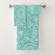 Light mint-green vintage floral paisley pattern over the turquoise-blue background.The light
