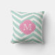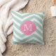 Mint Green and White Chevron Pattern with monogram Throw Pillow