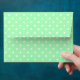 Soft mint green with tiny white polka dots. You can delete the polka dot pattern on the exterior if you'd prefer. Create your own envelopes for your special occasion.