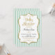 An elegant mint green and gold baby shower invitation featuring faux gold glitter accent frame and mint and white stripes with gold and black text. This modern baby shower invite is a super stylish way to welcome your shower guests. Gender neutral, this is appropriate for both boy baby shower invitation and a girl baby shower invitation.