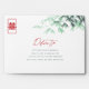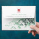 Oriental zen mint green and white bamboo leaves with a rectangle double happiness symbol on the inside and a red double happiness on the front of the envelope. An elegant and stylish chinese themed wedding design which is modern, simple and classy.