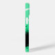 Bright animal patterned iphone case in mint green and jet black. Personalise this item with your full name. This example currently reads: Katherine Crawford. This original pattern by Sarah Trett, is based on the patterning found on a giraffe with a halftone moir dot gain pattern overlay.