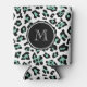 Mint Green Black Leopard Animal Print with Monogra Can Cooler