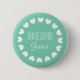 Personalized mint green and white bridesmaid buttons with hearts and elegant font. Great for bachelorette party, bridal shower and beautiful weddings. Classy round design. Posh and cute! Make your own for maid of honour, matron of honour, flower girl, mother of the bride etc.