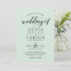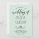 Fresh and elegant, this wedding invitation features flowing calligraphy and refined serif typography on a soft mint green background. The cool pastel tone brings a light, airy feel while the bold type treatment keeps the design polished and sophisticated. All text is fully editable — personalize names, date, venue, and wording to match your celebration.