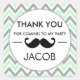 This boy's moustache or little man birthday sticker feathers a grey, white and mint green chevron pattern and a black moustache. Same design birthday invitation with an area for a photograph is also available at the store. This moustache little man birthday sticker is ready to be personalized.