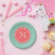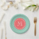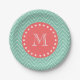 Mint Green Chevron Pattern | Coral Monogram Paper Plate