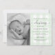Mint Green Gingham Photo Christening Invitation
